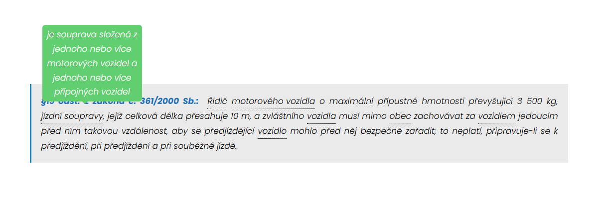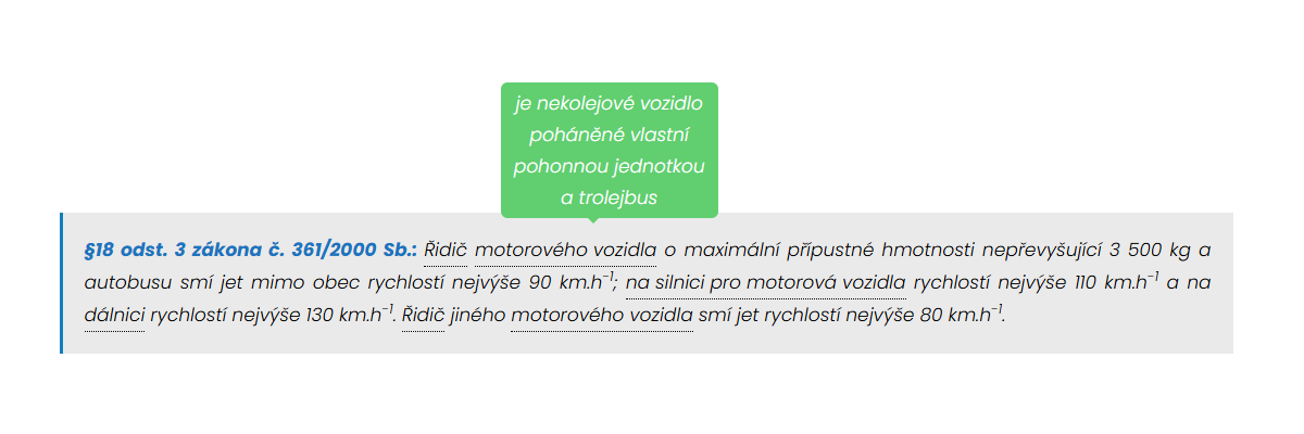 Tooltips ti hned vysvětlí význam pojmu, aniž bys musel/a odcházet do jiné kapitoly. Stačí najet kurzorem na výraz jako třeba jízdní souprava, motorové vozidlo nebo dálnice a okamžitě se ti zobrazí jednoduché vysvětlení. Učení je tak plynulé a neztrácíš čas zbytečným hledáním.